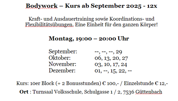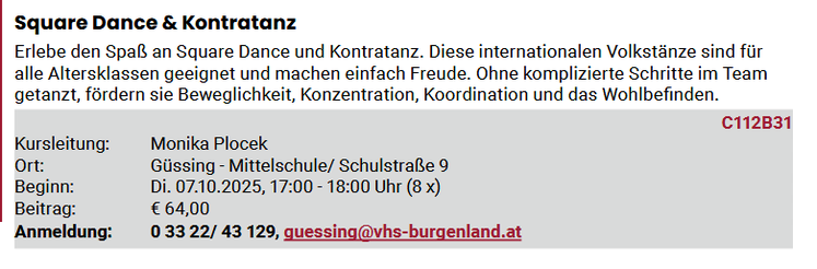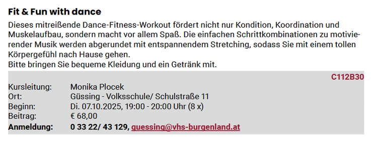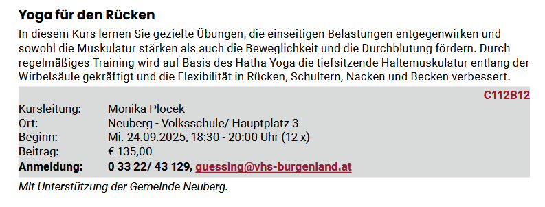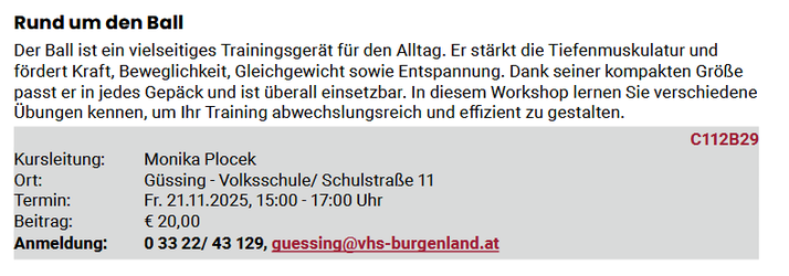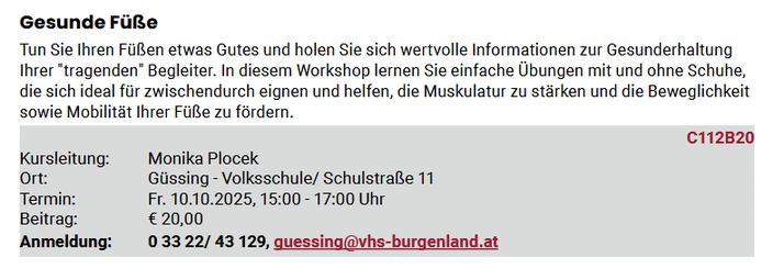 Meine Kurse für die Volkshochschule Güssing im Herbst 2025